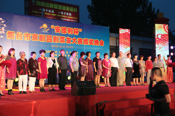 由煙臺市廣播電視臺、煙臺市戲劇家協(xié)會主辦,煙臺安德利房地產(chǎn)開發(fā)有限公司協(xié)辦的“安德利杯”煙臺市京劇呂劇票友大賽頒獎(jiǎng)晚會,于6月8日晚,在安德利文化廣場隆重舉行。出席頒獎(jiǎng)晚會現(xiàn)場的嘉賓有:煙臺市文聯(lián)主席孫光輝;煙臺廣播電視臺臺長、黨委書記王天立;山東省煙臺藝術(shù)學(xué)校校長、黨委書記王昌盛;牟平區(qū)委常委、宣傳部長王媛;山東安德利集團(tuán)董事長王安;煙臺市文聯(lián)副主席尹濤;煙臺廣播電視臺副臺長夏吉江;煙臺市呂劇院院長夏文森;牟平區(qū)文化廣電新聞出版局黨組書記、局長王旭波;山東安德利集團(tuán)副總裁、煙臺北方安德利果汁股份有限公司總裁張輝;山東安德利集團(tuán)副總裁、煙臺安德利房地產(chǎn)開發(fā)有限公司總經(jīng)理張偉。